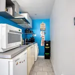- ❓Is there a kitchen available at the apartment for guest use?Yes, the apartment is furnished with an equipped kitchenette and offers a microwave oven, coffee and tea making machines, and a fridge as well.